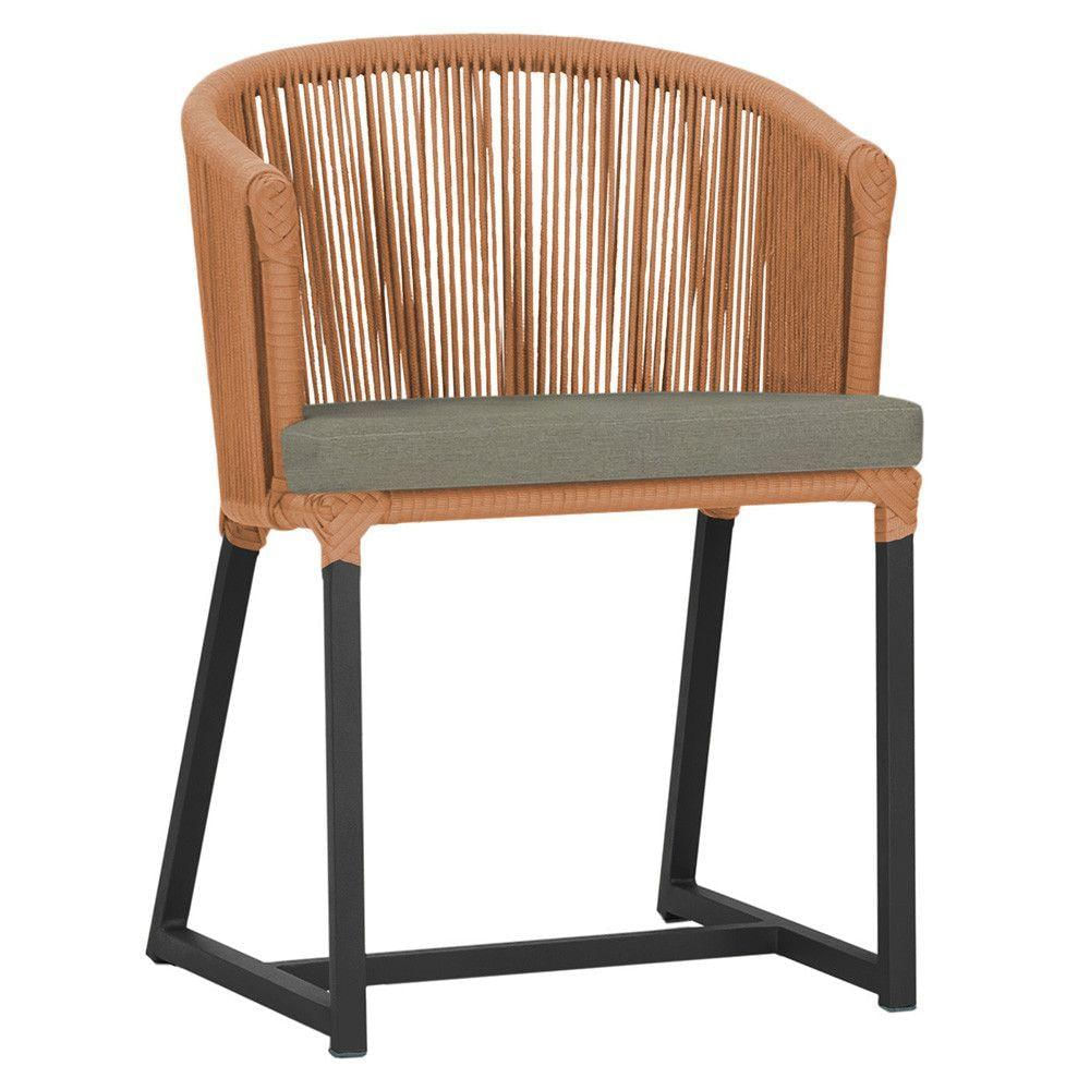 Cadeira De Jantar Noronha Alumínio Preta E8 Trama Terra Cota
