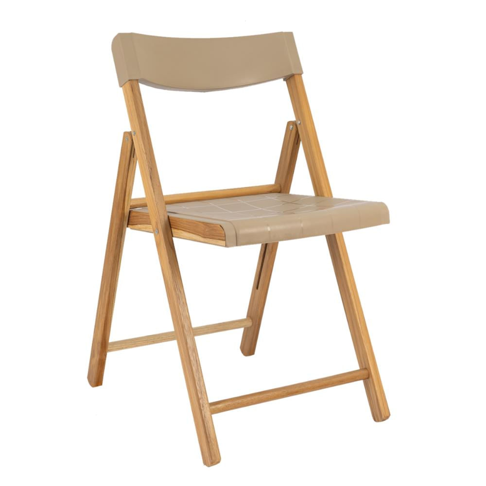 Cadeira de Madeira Dobrável Tramontina Verona em Madeira Teca com Acabamento Envernizado com Assento e Encosto em Polipropileno Camurça