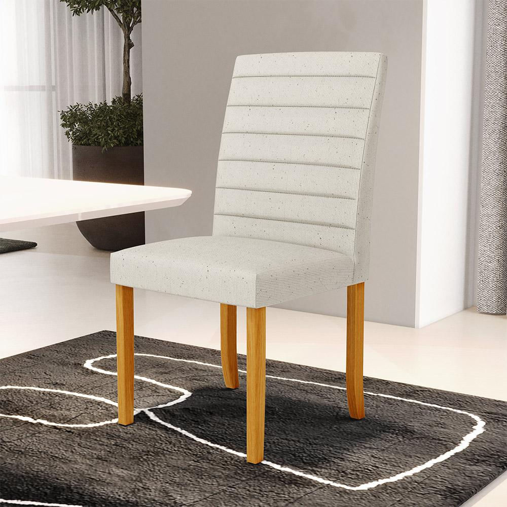 Cadeira de Sala de Jantar Estofada Veiga Madeira Maciça Linho Off White G78 - Gran Belo