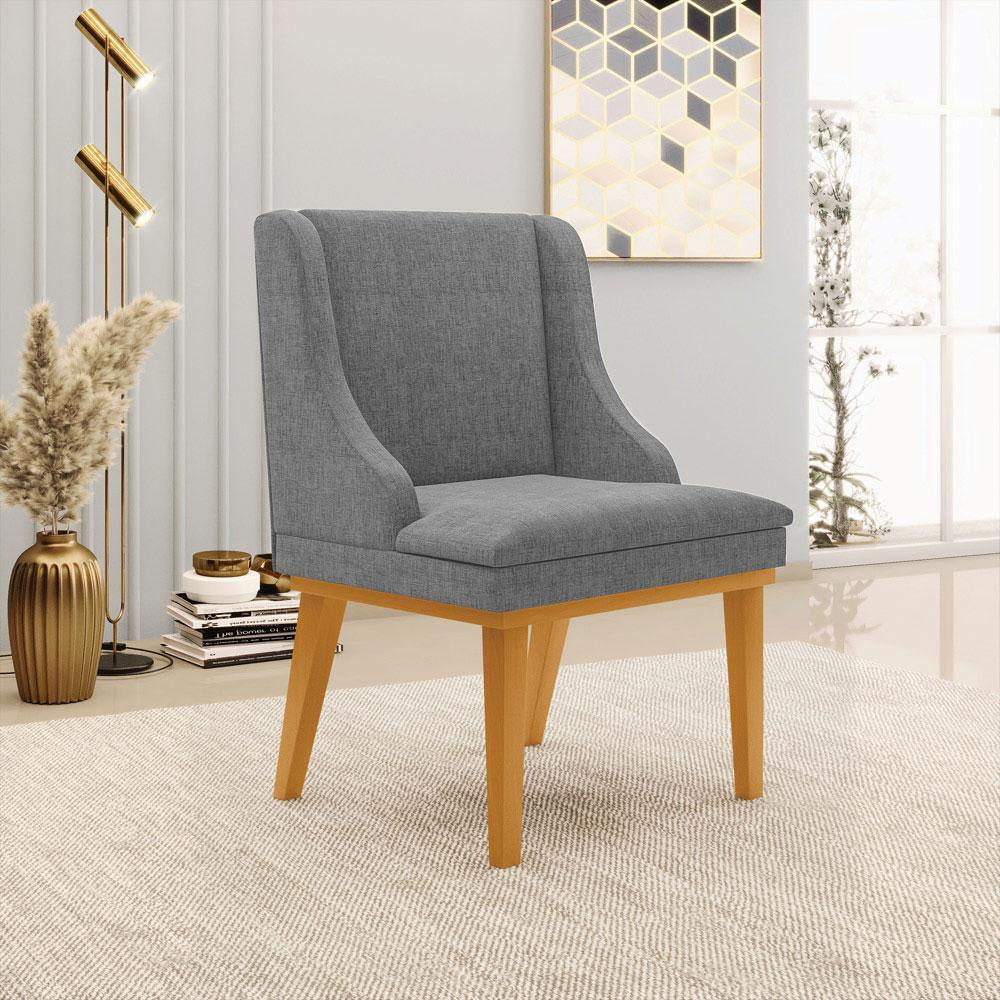 Cadeira Decorativa Sala de Jantar Base Fixa de Madeira Firenze Linho Grafite/Castanho G19 - Gran Belo