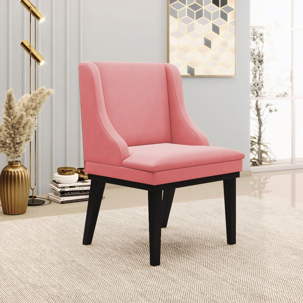 Cadeira Decorativa Sala de Jantar Base Fixa de Madeira Firenze Suede Rosê/Preto G19 - Gran Belo
