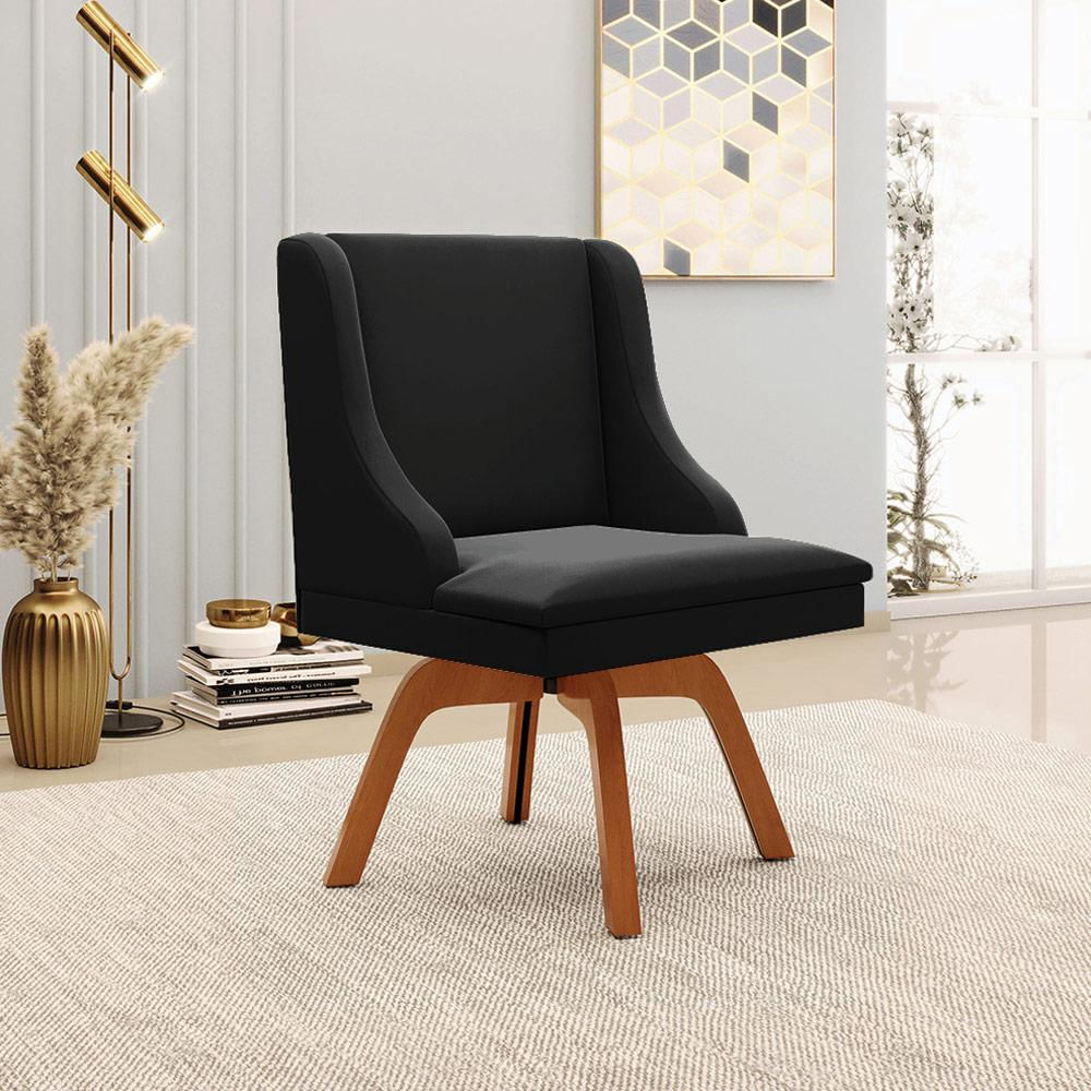 Cadeira Decorativa Sala de Jantar Base Giratória de Madeira Firenze Veludo Preto/Natural G19 - Gran Belo