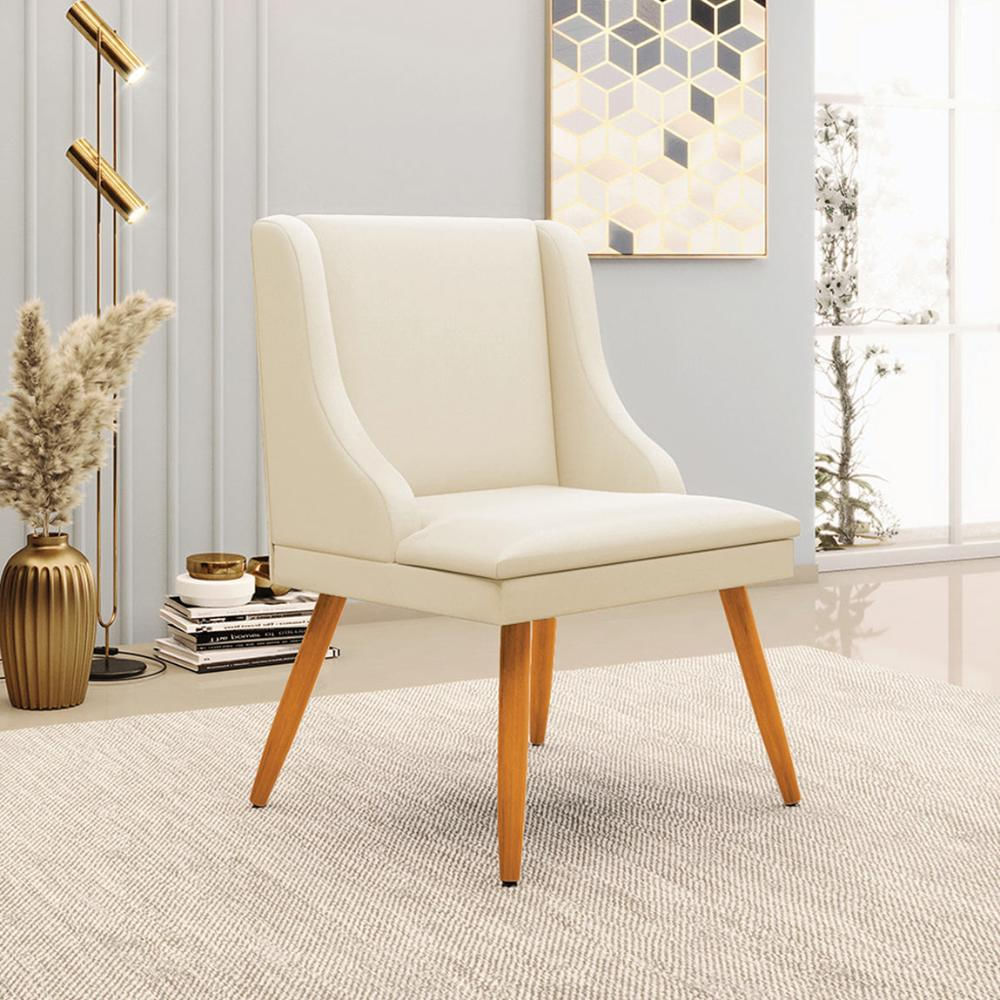 Cadeira Decorativa Sala de Jantar Pés Palito de Madeira Firenze PU Bege/Natural G19 - Gran Belo