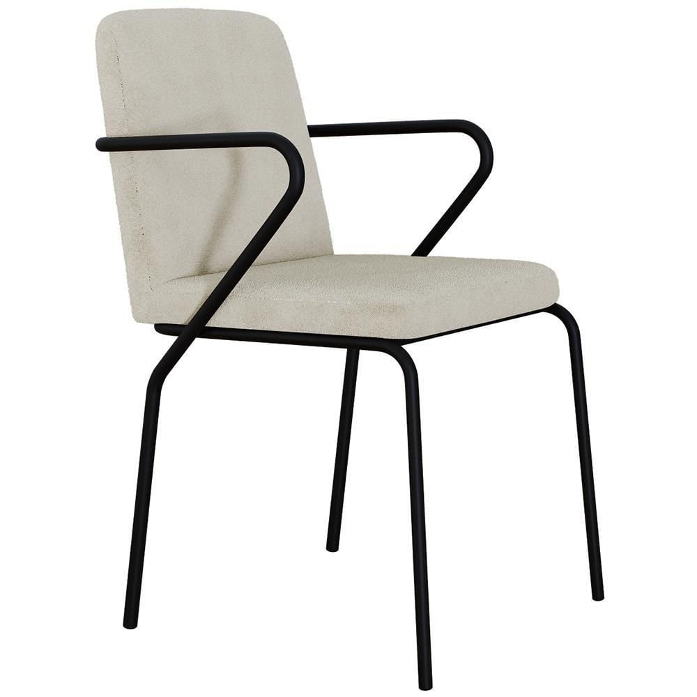 Cadeira Estofada Para Sala De Jantar Com Braço Loft Preto C01 Bouclê Vanilla - Lyam Decor