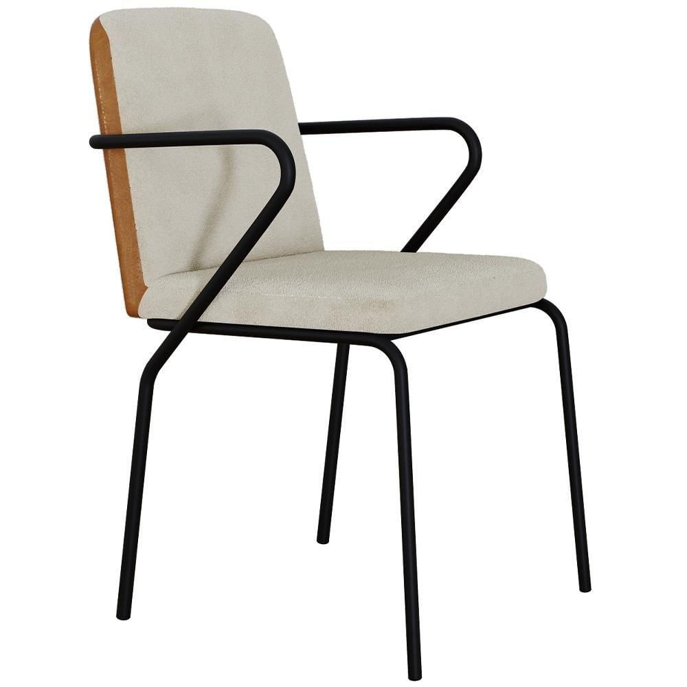Cadeira Estofada Para Sala De Jantar Com Braço Loft Preto C01 Bouclê Vanilla Courino Caramelo - Lyam Decor