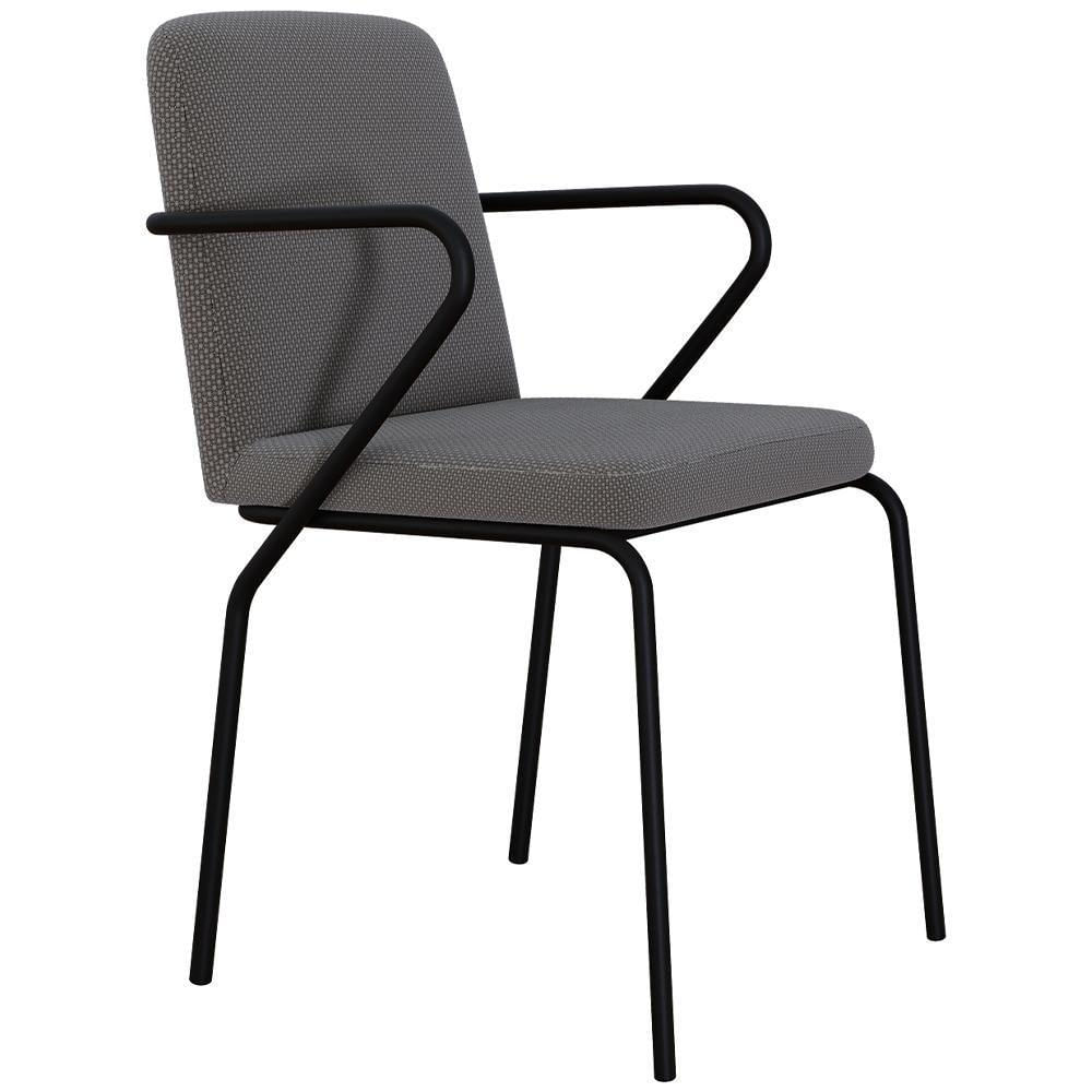 Cadeira Estofada Para Sala De Jantar Com Braço Loft Preto C01 Linho Fendi Cinza - Lyam Decor