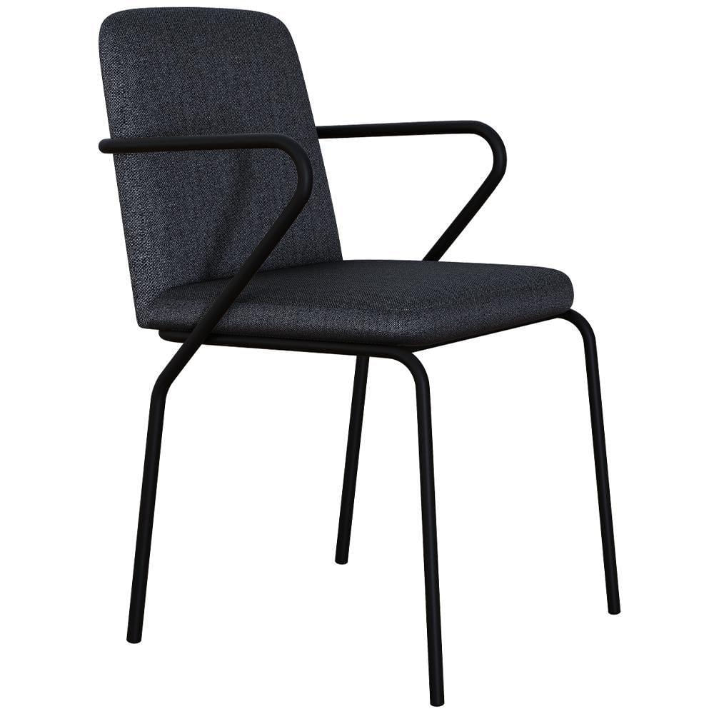 Cadeira Estofada Para Sala De Jantar Com Braço Loft Preto C01 Linho Grafite - Lyam Decor