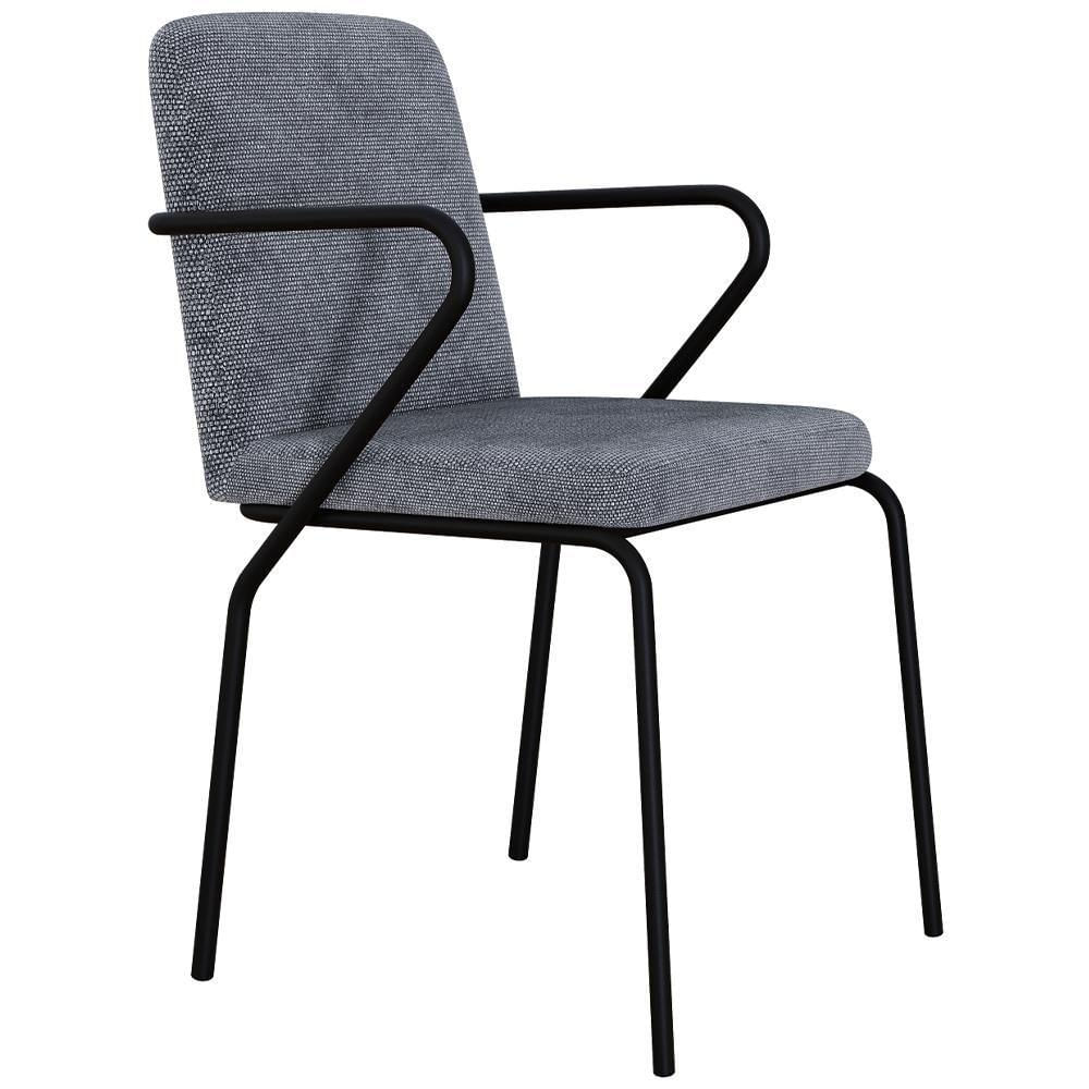 Cadeira Estofada Para Sala De Jantar Com Braço Loft Preto C01 Linho Prata - Lyam Decor