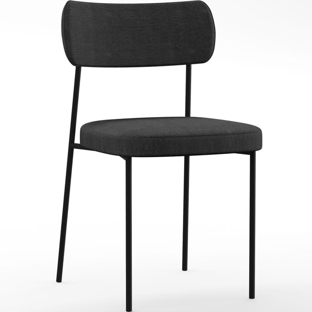 Encosto e assento estofados com espuma laminada, revestidos em Linho Chumbo.Estrutura fixa em aço carbono com pintura epóxi na cor preto.