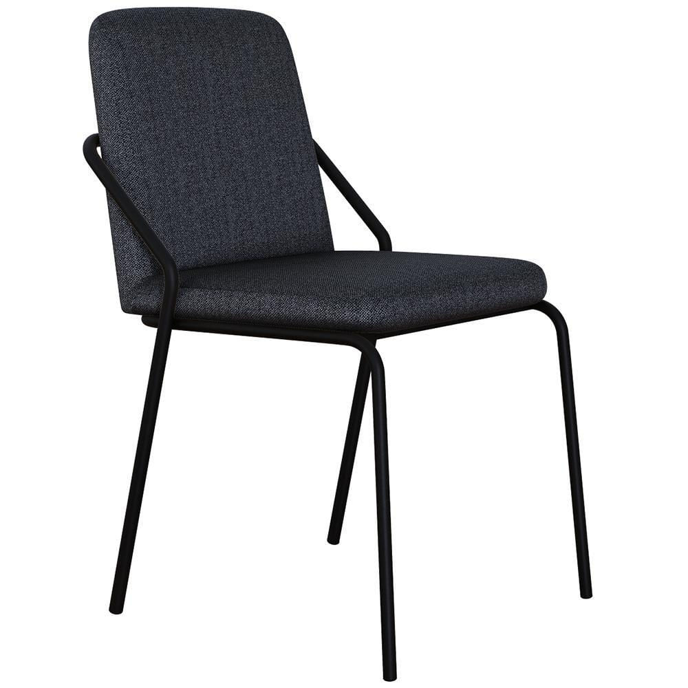 Cadeira Estofada Para Sala De Jantar Loft Preto C01 Linho Grafite - Lyam Decor