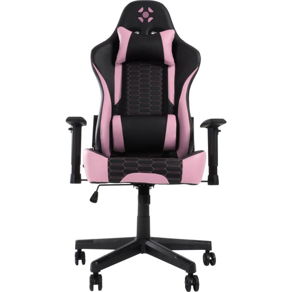 Cadeira Gamer Fortrek Cruiser Preta/rosa A Cadeira Gamer Fortrek Cruiser possui uma design exclusivo cuja costura remete aos famosos bancos dos carros esportivos enquanto você desfruta do prazer de jogar seus games favoritos. Uma inclinação do encosto de 155º permite que o usuário relaxe após horas de partida ou de trabalho exaustivo, isso unido a um balanço relaxante de 3~18º. Um assento firme com um pequeno apoio para cabeça e almofada para as costas oferecem um conforto prolongado. Com roda de 60mm de diâmetro construída em nylon a cadeira Cruiser garante liberdade para movimentar-se para todos os lados.