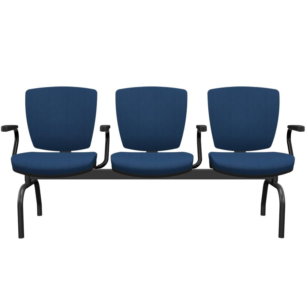Cadeira Longarina 3 Lugares Aeroporto Recepção Preto Baixa Flexi P03 Poliéster Azul - Lyam