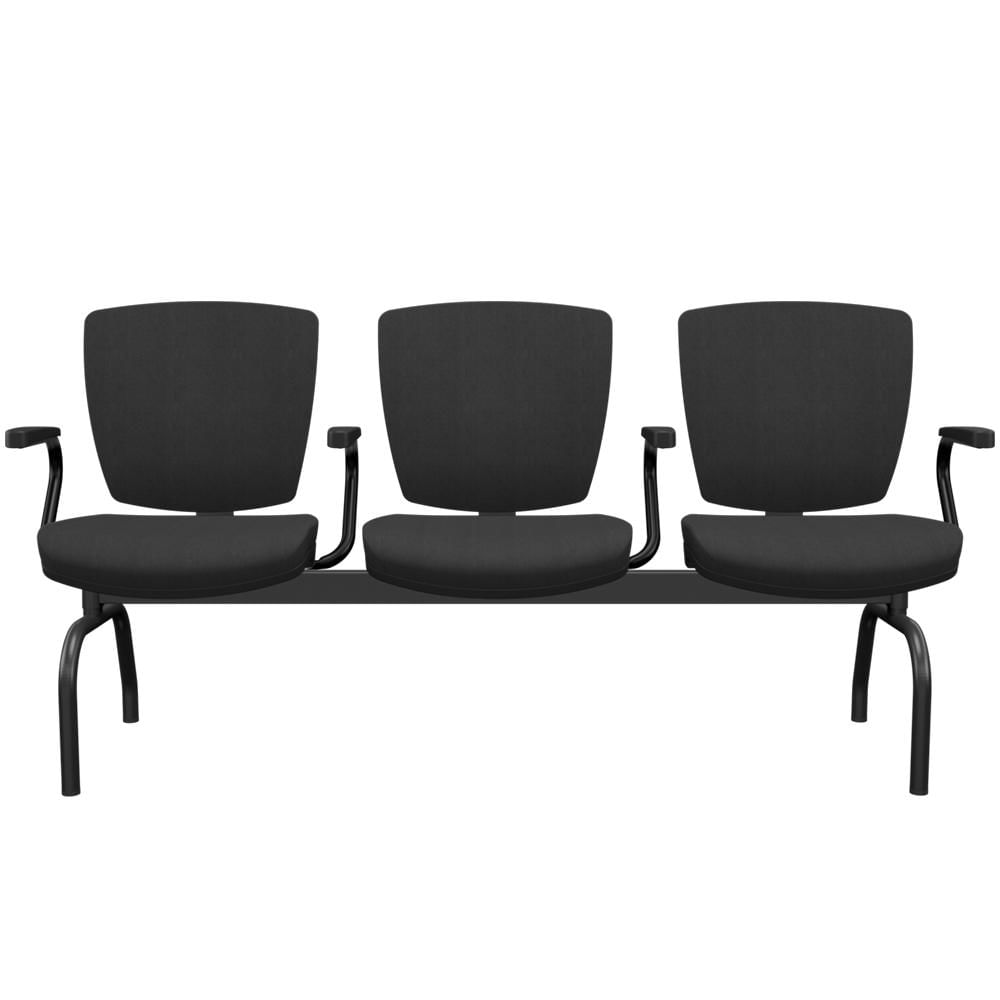 Cadeira Longarina 3 Lugares Aeroporto Recepção Preto Baixa Flexi P03 Poliéster Preto - Lyam