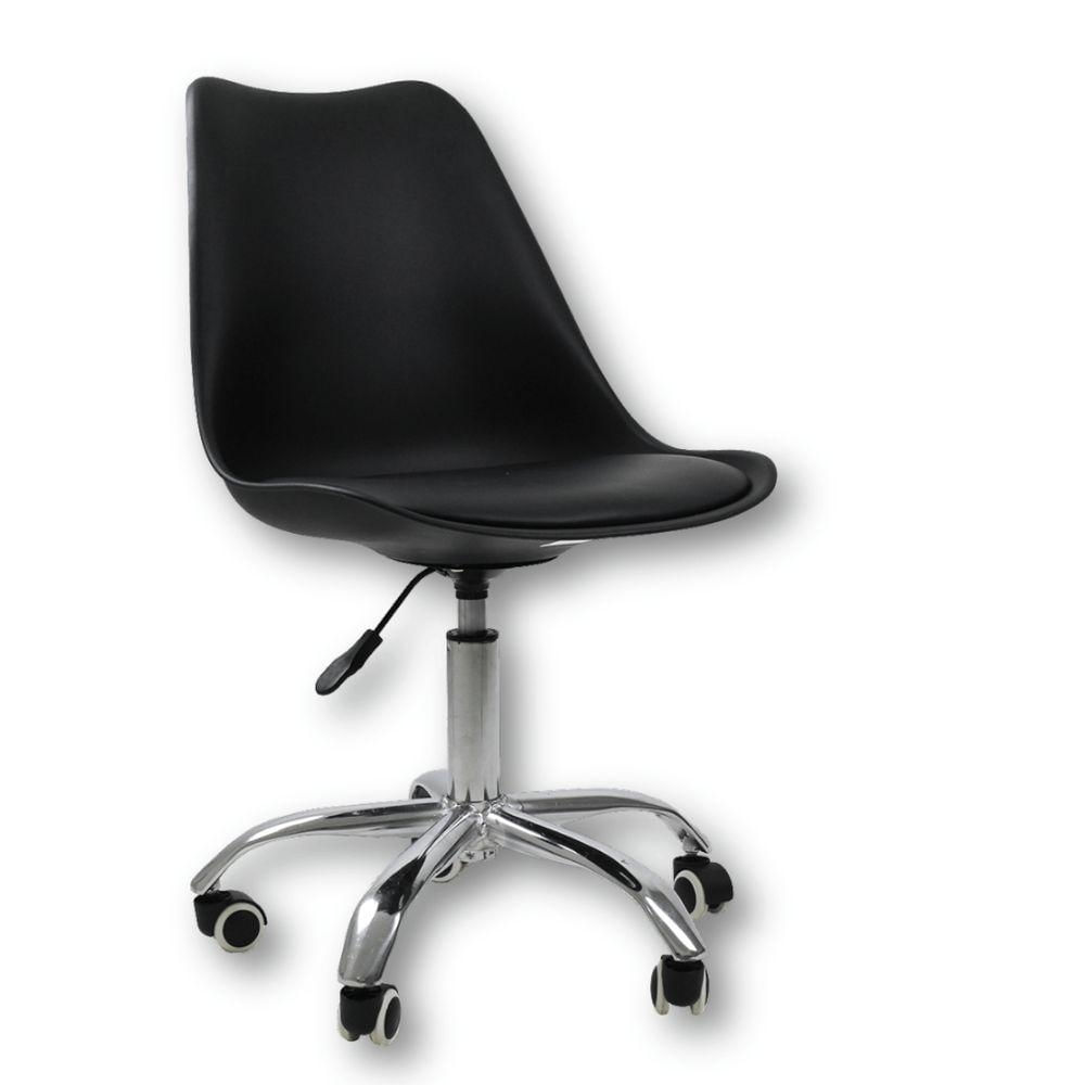 Cadeira Office Base Cromada Com Rodízio Giratória Saarinen Preto 1