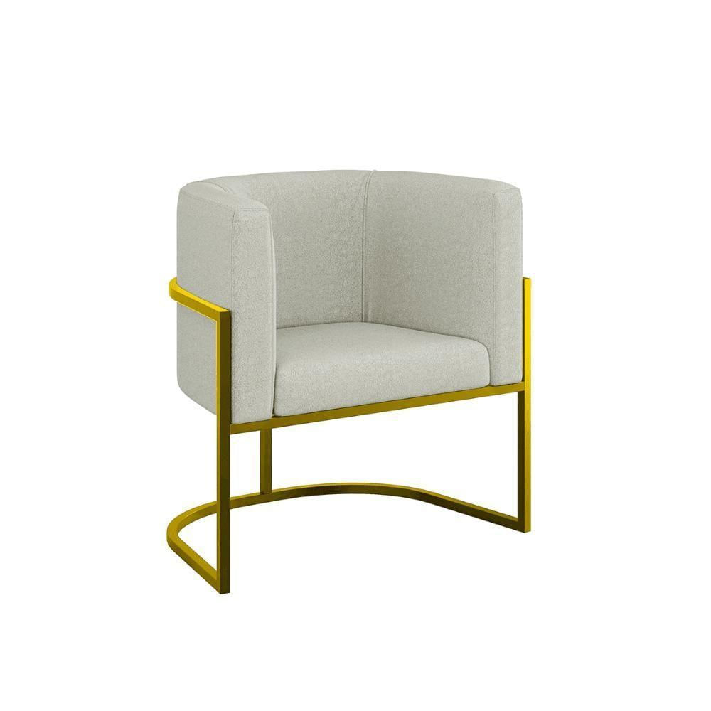 Cadeira Poltrona Lua Bouclê Base De Metal Dourada Reforçada Bege
