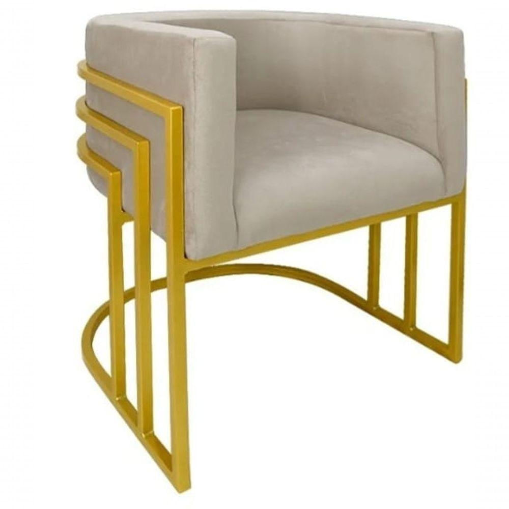 Cadeira Poltrona Luxo Base De Metal Tripla Dourado Sala De Jantar Cozinha Recepção Veludo Bege Do Lar Móveis E Decoração