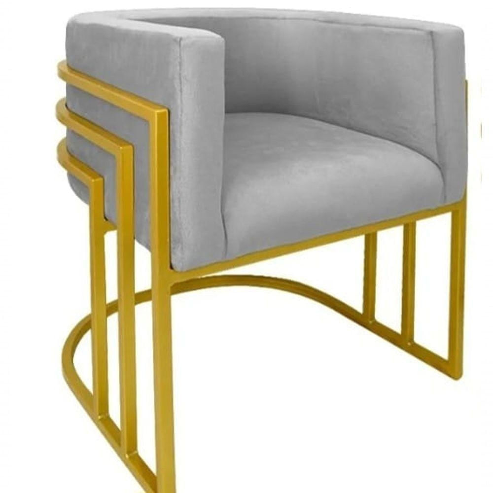 Cadeira Poltrona Luxo Base De Metal Tripla Dourado Sala De Jantar Cozinha Recepção Veludo Prata Eli Móveis E Decoração