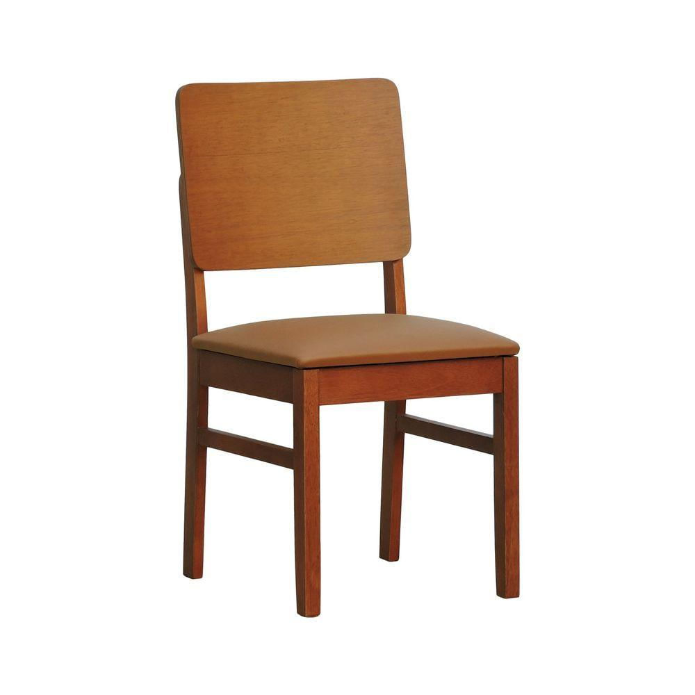 Cadeira Quéops Madeira Maciça Encosto Anatômico Assento Estofado - Amêndoa Corano Caramelo