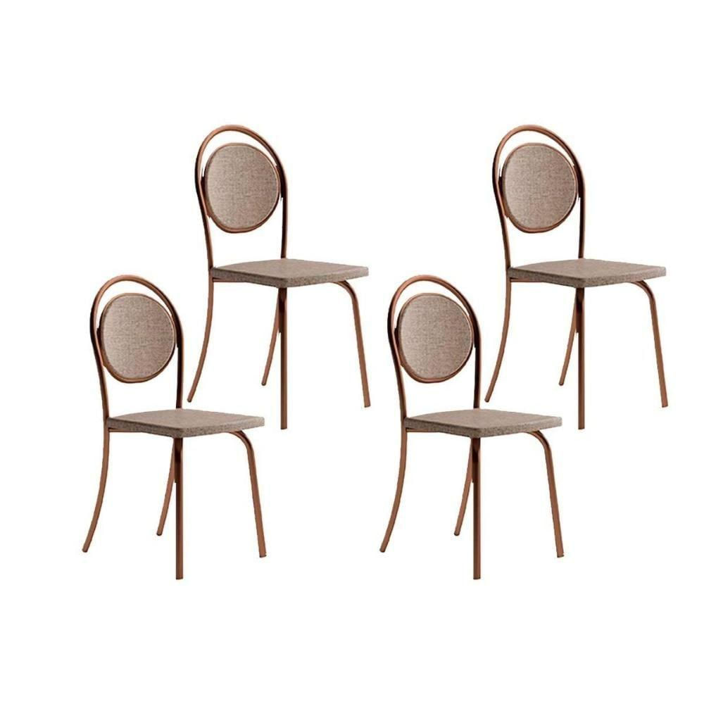 Cadeira Sala De Jantar 1738 Kit 4 Uni Rose/linho Areia/courano Caramelo - Carraro