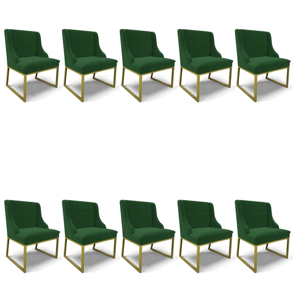 Cadeira Sala de Jantar Industrial Dourado kit 10 Liz Veludo D03 - D'Rossi Verde