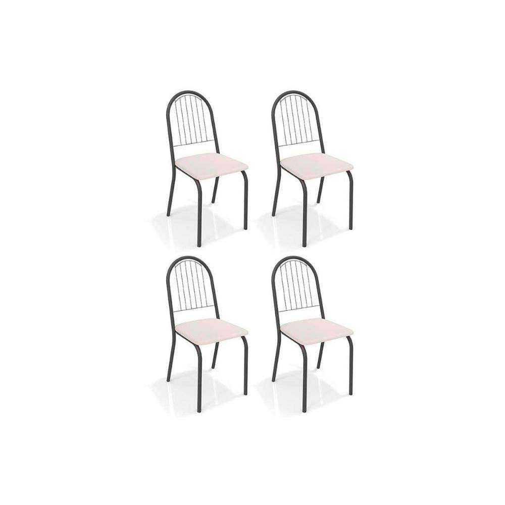 Cadeira Sala De Jantar Noruega 4C077Prf Kit 4 Un Preto Fosco/Courano Branco - Kappesberg