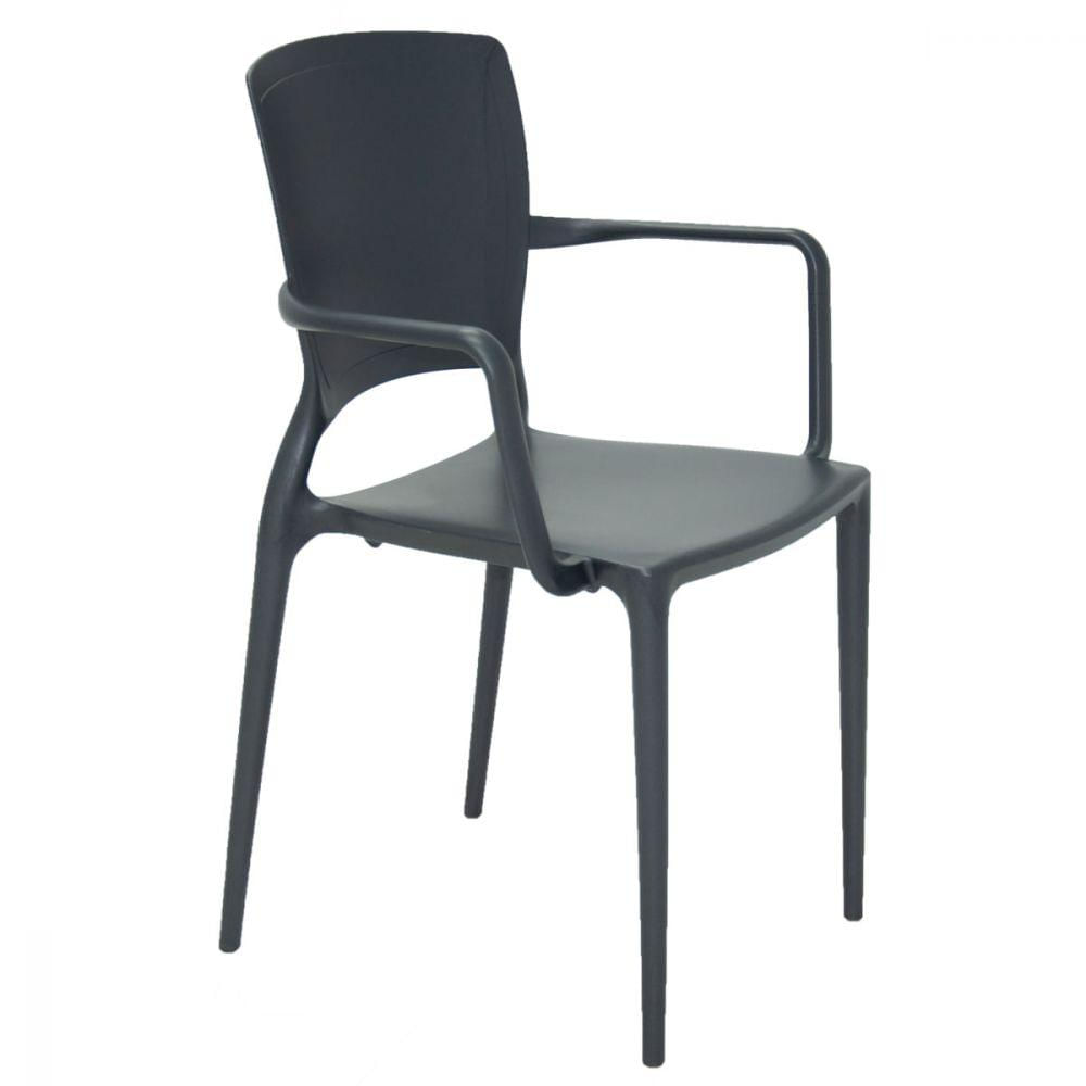 Cadeira Tramontina Sofia com Encosto Fechado em Polipropileno e Fibra de vidro Grafite com BraçosA cadeira Tramontina Sofia Summa com encosto fechado em polipropileno e fibra de vidro grafite com braços é a escolha perfeita para quem procura estilo e conforto para compor seus espaços residenciais ou corporativos. Perfeita para sua casa ou escritório, ela tem sua estrutura produzida em polipropileno e fibra de vidro, e ainda conta com encosto fechado. Ela é resistente e suporta cargas de até 182 quilos. Uma cadeira na moderna cor grafite, que vai deixar seus espaços mais aconchegantes e com um toque supermoderno! Especificações Técnicas - Linha ou Coleção : Sofia - Comprimento : 59 Cm - Largura : 50,5 Cm - Altura : 84,5 Cm - Material : Polipropileno e Fibra de Vidro - Material das Pernas : Polipropileno e Fibra de Vidro - Cor : Grafite - Estofada : Não - Altura do chão até o assento : 45 Cm - Suporta até (kg) : 182 Kg - Empilhável : Sim - Braço : Sim - Altura do chão até o braço : 65,5 Cm - Tipo de Assento : Fixo - Antiderrapante : Sim - Necessita Montagem : Não - Informações Gerais : Peso Máximo Recomendável: 182 kg Produzido em Polipropileno e Fibra de Vidro Empilhável até: 9 peças - Recomendações de Uso : Não subir no assento. Respeite o limite máximo de peso. Transporte sempre com cuidado. Retire o produto do ambiente sempre que for higienizar o piso; alguns materiais de limpeza podem causar danos em contato com a peça. Prolongue a vida útil do produto mantendo-o guardado quando não estiver em uso. Longas exposições ao sol podem provocar manchas ou perda da cor do produto. Lavar manualmente com água e sabão neutro. - Cômodo Indicado : Cozinhas - Peso : 4,00 Kg - Garantia do fabricante :12 Meses para defeitos de fabricação - Marca : Tramontina | Ref.: 92039007