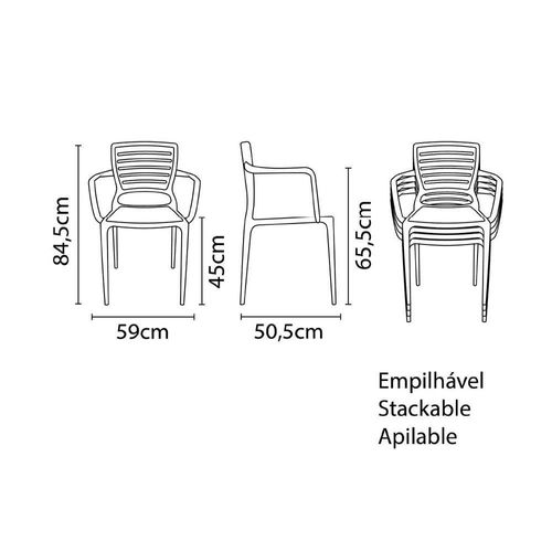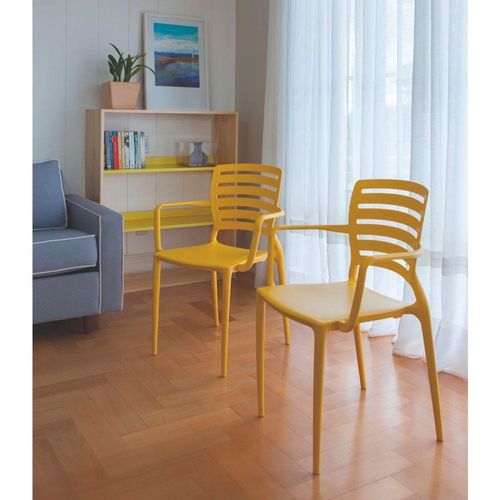 Insira a cadeira Tramontina Sofia Summa com encosto horizontal e braços em polipropileno e fibra de vidro amarelo em seus ambientes e veja-os com muito mais cor e estilo. Desenvolvida com um design de linhas contemporâneas, ela tem seu corpo em polipropileno e fibra de vidro e é altamente resistente, suportando cargas de até 182 quilos. Ela é sem dúvida, a escolha ideal para quem deseja compor ambientes muito mais bonitos e especiais!Linha ou Coleção - SofiaLargura (cm) - 59 cmProfundidade (cm) - 50,5 cmAltura (cm) - 84,5 cmMaterial Principal - PolipropilenoMaterial das Pernas - PolipropilenoMaterial do Assento - PolipropilenoMaterial do Encosto - PolipropilenoCor - AmareloAcabamento - FoscoEstofada - NãoAltura do chão até o assento - 45 cmSuporta até (kg) - 182 kgEmpilhável - SimBraço - SimAltura do chão até o braço - 65,5 cmTipo de Assento - FixoAntiderrapante - SimNecessita Montagem - NãoMais Informações - Peso Máximo Recomendável: 182 kgFabricação: Polipropileno e Fibra de Vidro InjetadoEmpilhável até: 9 peçasRecomendações de Uso - Transporte sempre com cuidado.Não subir no assento.Respeite o limite máximo de peso.Higienizar com sabão neutro e esponja macia, evitando produtos abrasivos no processo de limpeza.Para evitar manchas, após a lavagem, secar com pano seco e macio.Prolongue a vida útil do produto mantendo-o guardado quando não estiver em uso.Longas exposições ao sol podem provocar manchas ou perda da cor do produto.Cômodo Indicado - CozinhasPeso - 4,00 kgCertificação - InmetroMarca - TramontinaGarantia do fabricante - 12 meses para vícios ou defeitos de fabricação