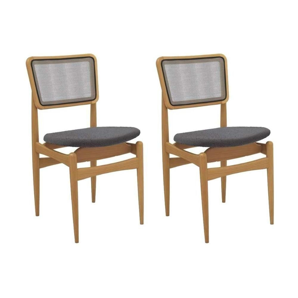 Cadeiras Cozinha Stela 1cmm013ca Premium Madeira Maciça Kit 2 Un Carvalho/boucle Grafite/tela Grafite Kappesberg