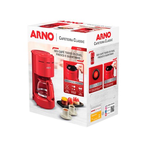 Comece o seu dia com muito mais sabor e estilo com a incrível Cafeteira Elétrica Arno Classic CFC2 Vermelha 12 Xícaras. Essa cafeteira é perfeita em todos os sentidos, oferecendo praticidade, elegância e a qualidade incomparável. Com um design moderno e tamanho super compacto, a Cafeteira Filtro Arno Classic é a combinação ideal de funcionalidade e beleza. Ela se encaixa perfeitamente em qualquer tipo de cozinha, adicionando um toque discreto de requinte. Além disso, pode até ser levada diretamente à mesa, tornando-se um charmoso acessório para compartilhar bons momentos com sua família e amigos.