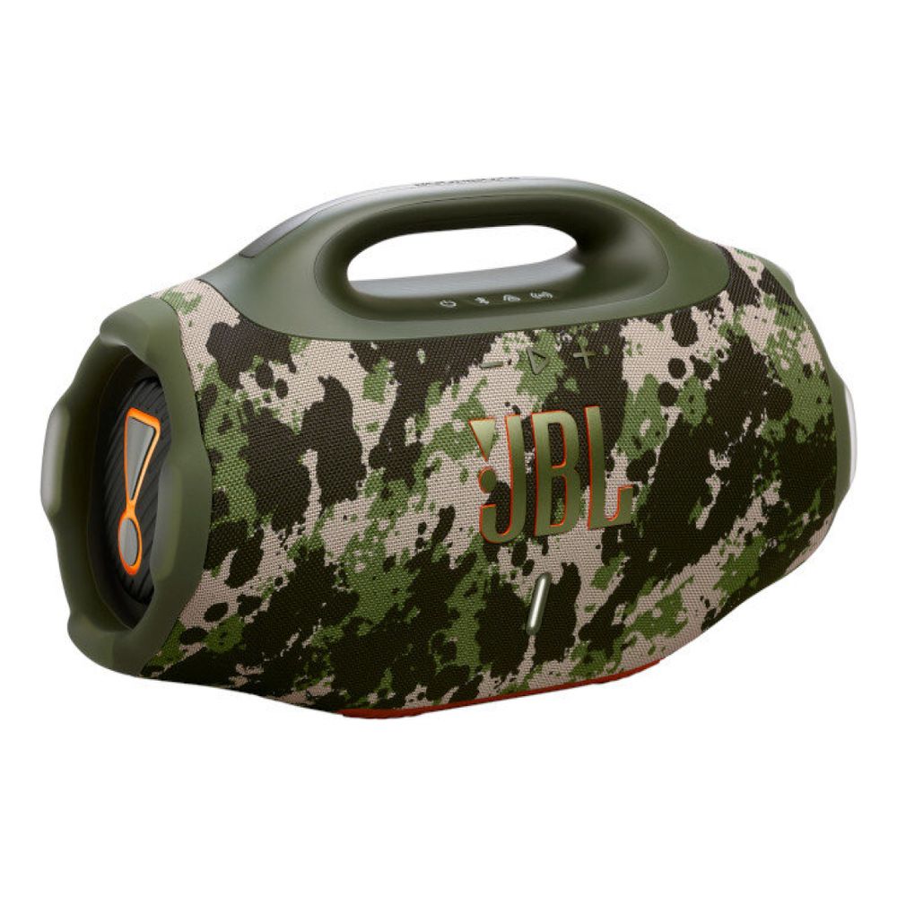 Som imbatível durante todo o dia Aumentamos o volume do nosso jeito, em qualquer lugar. O novíssimo JBL Boombox 4 é maior, mais arrojado e melhor do que nunca, com o potente som JBL Pro que permanece alto e claro, com graves profundos e estrondosos. O AI Sound Boost analisa nossa música em tempo real e ajusta o som para nos dar mais potência com menos distorção, mesmo quando aumentamos o volume. Ele vem com dois woofers maiores, dois tweeters e três radiadores passivos, para que cada faixa tenha mais força e soe mais limpa. Quando quisermos ajustar a vibração, basta alternar entre as configurações de reforço de graves profundos ou vibrantes para combinar com nosso humor. Demos ao design clássico do Boombox uma nova atualização, ele é maior, mas mais leve, para que possamos levá-lo aonde quer que a festa vá: à praia, ao quarteirão ou ao quintal. É IP68 à prova d'água e poeira, portanto, o clima nunca é um obstáculo. E, com até 34 horas de reprodução (graças ao Playtime Boost), estamos prontos para longas jornadas. Com o JBL Boombox 4, levamos o clima e a energia para onde quer que vamos. Especificações GeraisPotência de Saída (W RMS): (AC mode) - 2 x 65W RMS Woofer, 2 x 40W RMS Tweeter (Battery mode) - 2 60W RMS Woofer, 2 x 40W RMS TweeterEntrada de energia: 100 - 240 Vac; 50/60 HzRelação sinal-ruído: > 80 Db Especificações de ÁudioResposta de frequência: 37Hz - 20 kHzTransdutor: 2 x 5 inch / 2 x 123mm woofer, 2 x 0.75 inch / 2 x 20mm Tweeter, 2 pcs circle + 1 pc racetrack passive radiator DimensõesDimensões (Largura x Altura x Profundidade) (cm): 51 x 26 x 21Peso (kg):5.89 Especificações de Controle e ConexãoPerfis bluetooth: A2DP 1.4, AVRCP 1.6Faixa de frequência do emissor bluetooth: 2.4 GHz - 2.4835 GHzGFSK de modulação do emissor bluetooth: GFSK, p/4 DQPSK, 8DPSKPotência de emissão de bluetooth: = 14dBm (EIRP)Perfil Bluetooth: A2DP 1.4, AVRCP 1.6Bluetooth Faixa de frequência do transmissor (GHz): 2.4 - 2.4835Modulação do transmissor Bluetooth: GFSK, p/4 DQPSK, 8DPSKPotência do transmissor Bluetooth: = 14dBm (EIRP)Versão do Bluetooth: 5.4 Portas de conexão: AC-in, USB-C BateriaTempo de carga da bateria (horas): 3Tipo de Bateria: Rechargeable Li-ion Battery Pack 99.02WhComprimento do cabo (m): 2Tipo de cabo: AC Power CableTempo máximo de reprodução de música (hrs): 28 CaracterísticasAC power cable (type varies by regions): SimAI Sound Boost: SimBluetooth: SimJBL PartyBoost: SimPower bank: SimSupports Auracast: SimÀ prova de respingos d’água: SimWireless: SimÀ Prova de Poeira: SimClassificação IPX: IP68