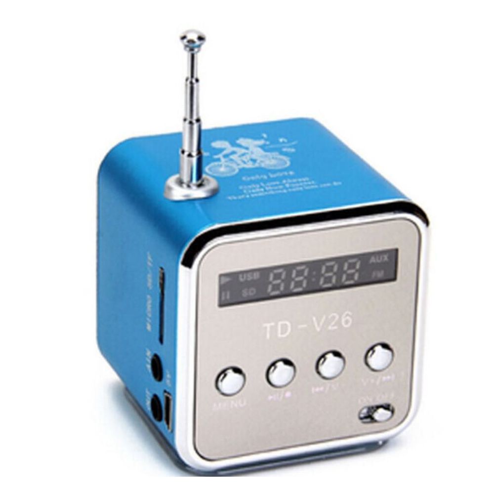 Caixa de Som Mini Portátil com Rádio, Tela, MP3 e Slot para Cartão. azul