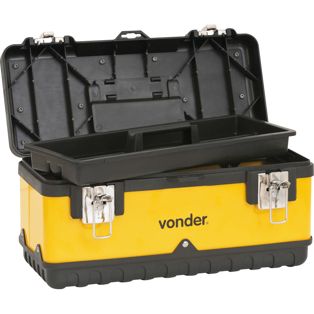 Conteúdo da embalagem 1 Caixa metálica para ferramentas Aplicações e dicas de uso Indicada para guardar, organizar e transportar ferramentas diversas Destaques e diferenciais Possui partes em polipropileno, tampa com estrutura reforçada e bandeja plástica removível