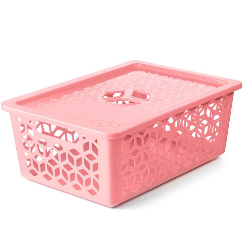 Caixa Cesto Organizador Empilhável Grande Com Tampa Alças Laterais UZ