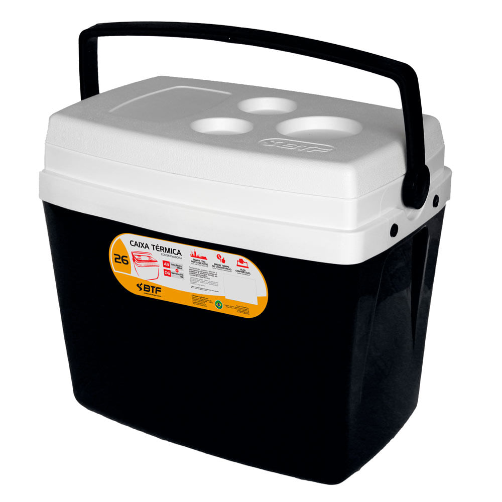 A Caixa Térmica Botafogo CXT0326 Preta 26L é o companheiro perfeito para quem busca qualidade, resistência e praticidade no armazenamento de alimentos e bebidas. Fabricado em polipropileno injetado, altamente resistente e durável, possui isolamento térmico com 5 lâminas em EPS. Com tampa multiuso, você terá muito mais praticidade.