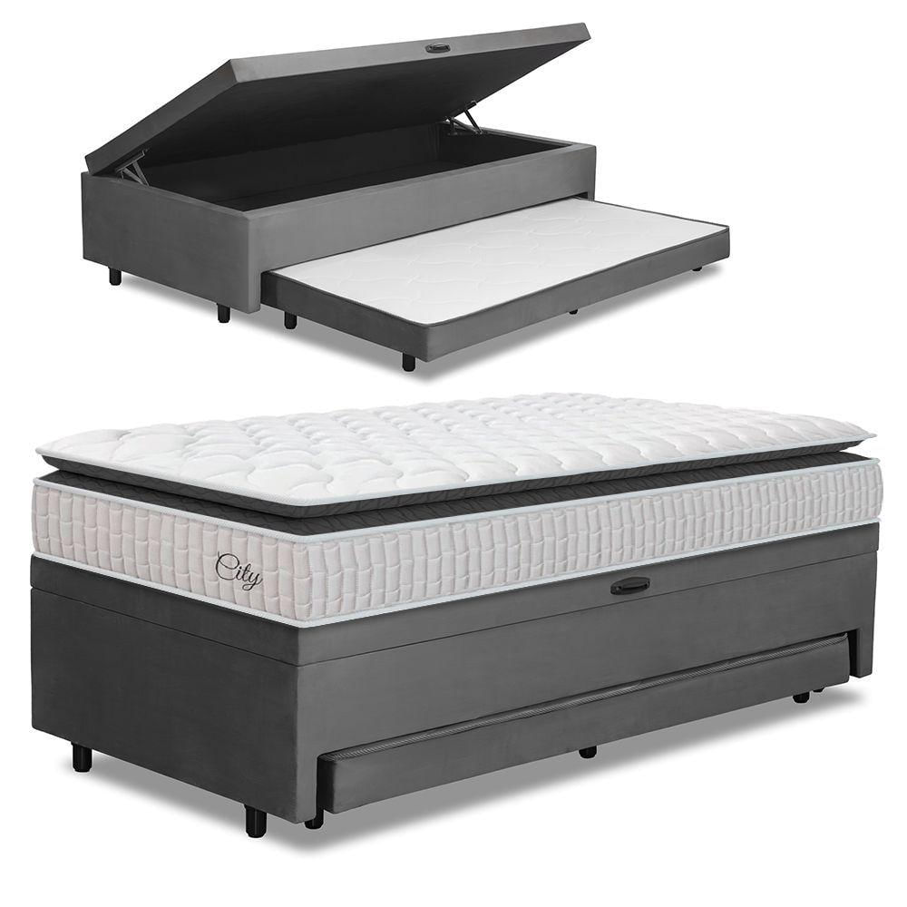 Cama Bibox Baú Com Colchão City Solteiro E Cama Auxiliar Conjugada 88x188x69cm Bela Cinza/branco