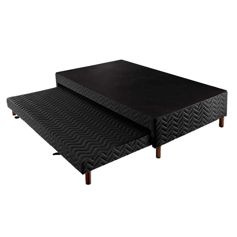 Cama Box Base C-auxiliar Com Auxiliar Sommier Rústico Bordado Black (88x188x30) - Paropas