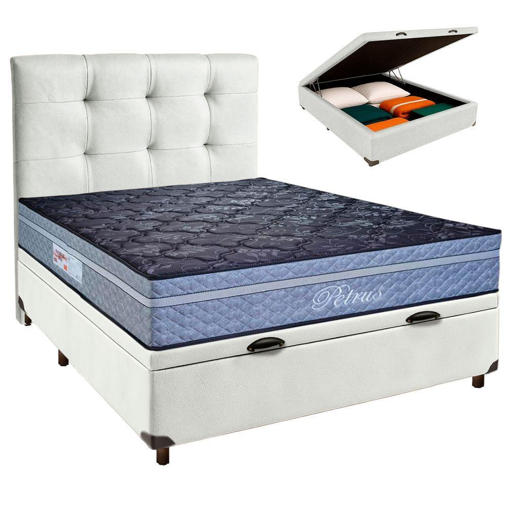 Cama Box Bau + Colchão Casal Molas Ensacadas Petrus Paropas + Cabeceira Estofada
