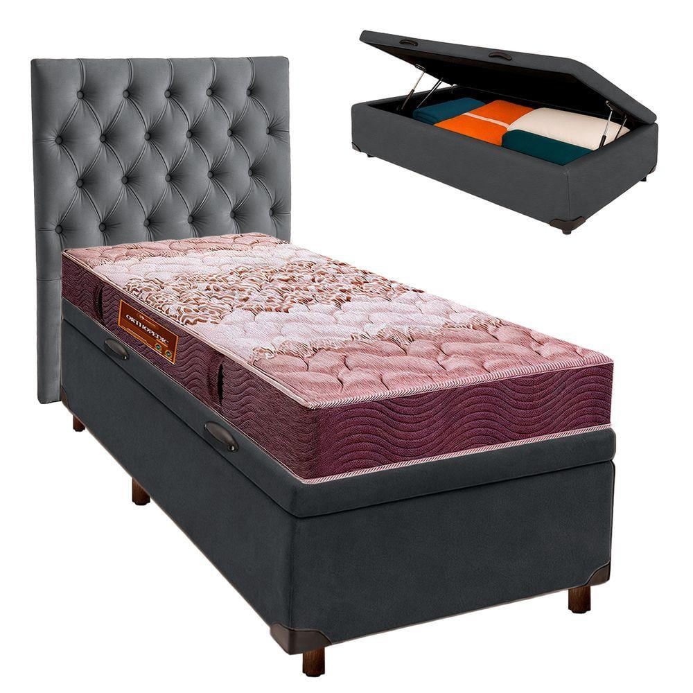 Cama Box Bau + Colchão Solteiro D26 Ortophedic Sankonfort + Cabeceira Estofada