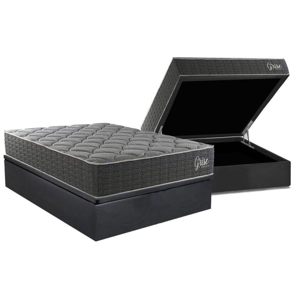 Cama Box Baú Casal + Colchão Ortopédico Kappesberg D40 Anatômico Grise + Base Crc Corano Gray