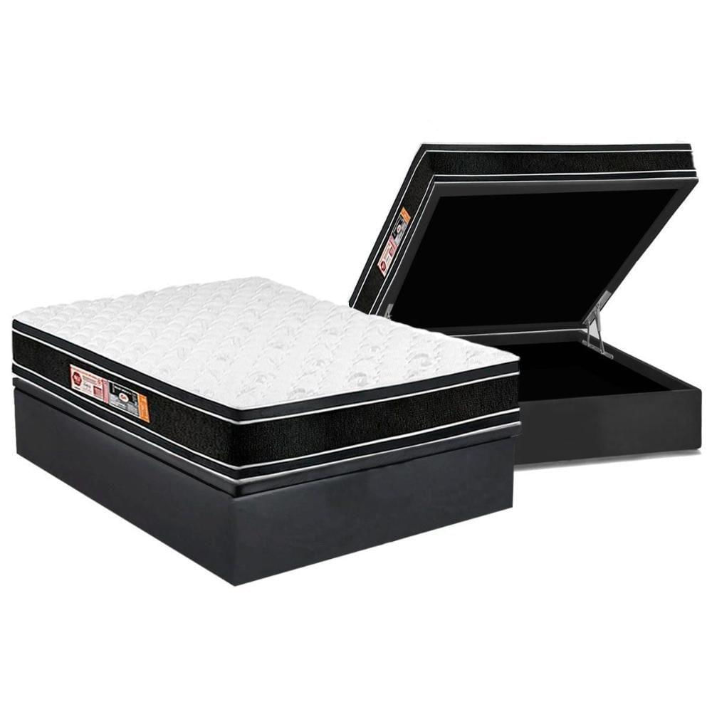 Cama Box Baú Casal: Colchão Castor D33 Black E White Air Double Face Euro Pillow+Base Gray(138X188)
