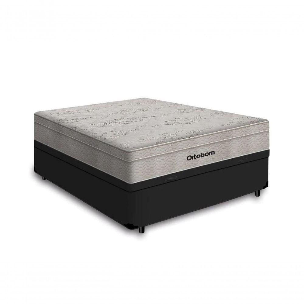 Cama Box Baú Casal 138 Tecido Sintético Preto Com Colchão Ortobom Airtech Spring Pocket D26 Bege 70x138x188