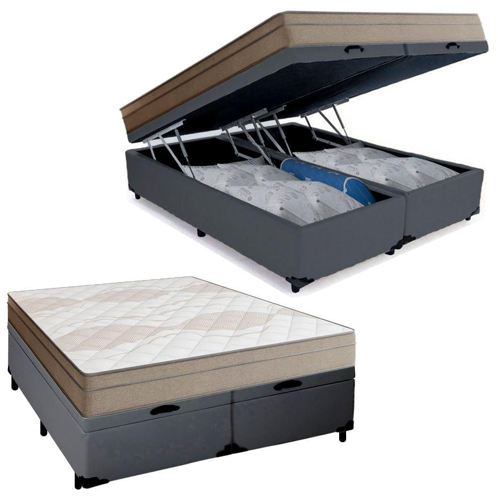 Cama Box Baú Casal Bipartido Sintético + Colchão De Molas Ensacadas Portobel Ipanema 138x188x66cm Cinza