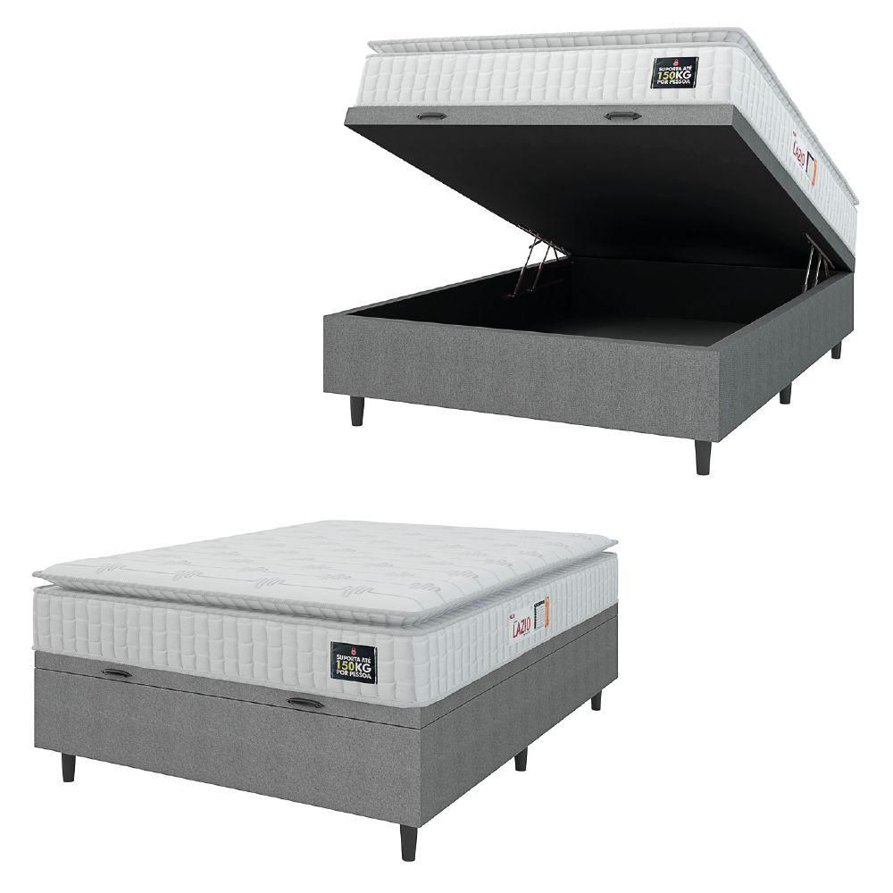 Cama Box Baú Colchão Casal Espuma D45 Lazio Pillow Top 138x70cm Branco/cinza Hellen Branco