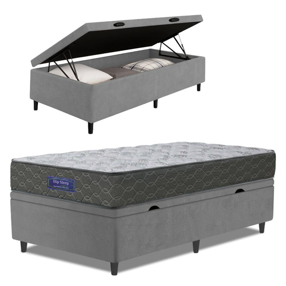 Cama Box Baú Colchão Solteiro Ortopédico Espuma D33 Hiper 88x188x60cm Cinza