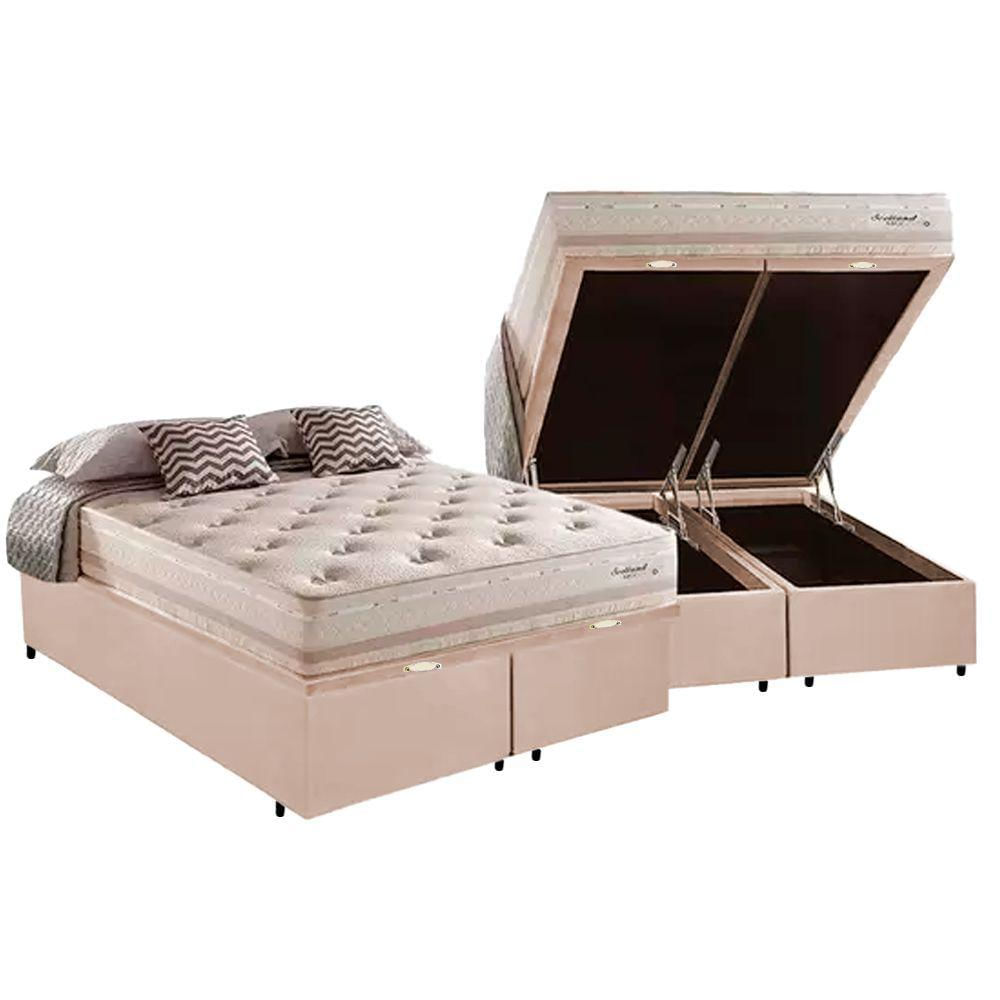 Cama Box Baú King + Colchão Herval Scotland Molas Maxspring 193x203x76 Suede Bege