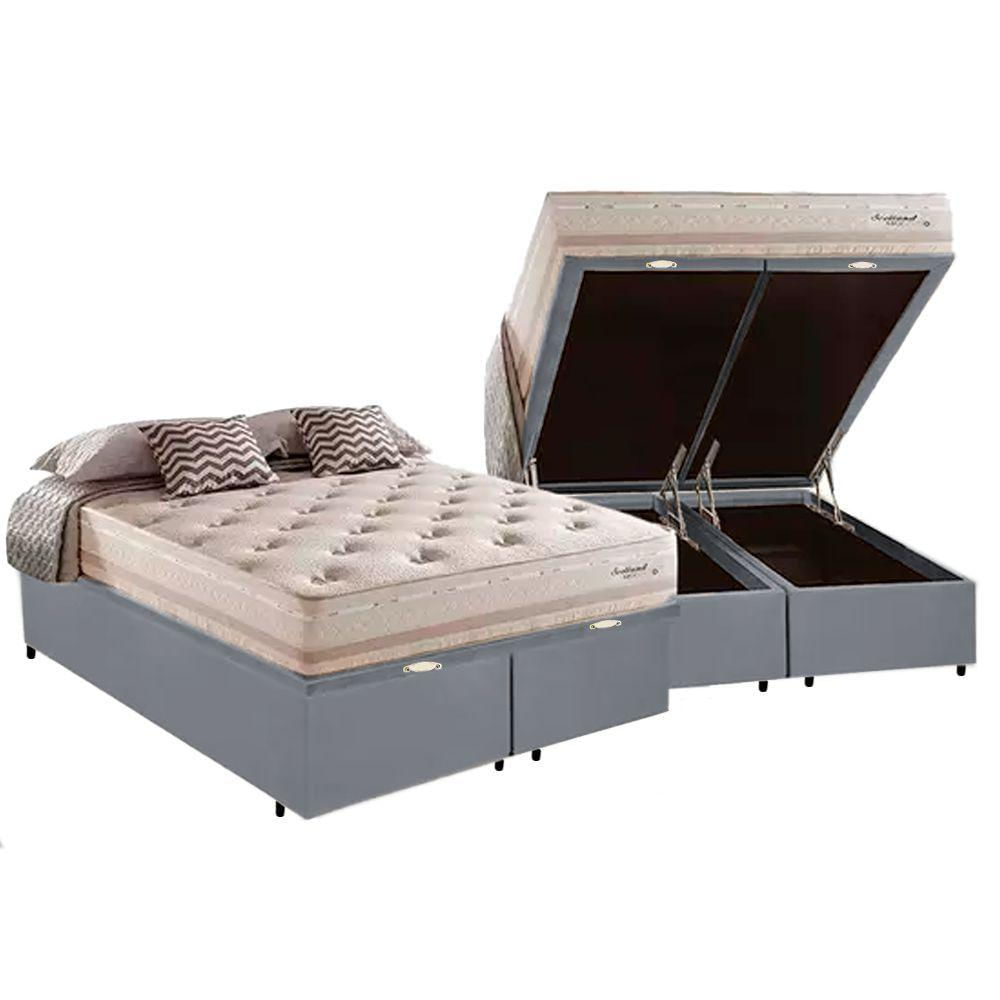 Cama Box Baú King + Colchão Herval Scotland Molas Maxspring 193x203x76 Suede Cinza