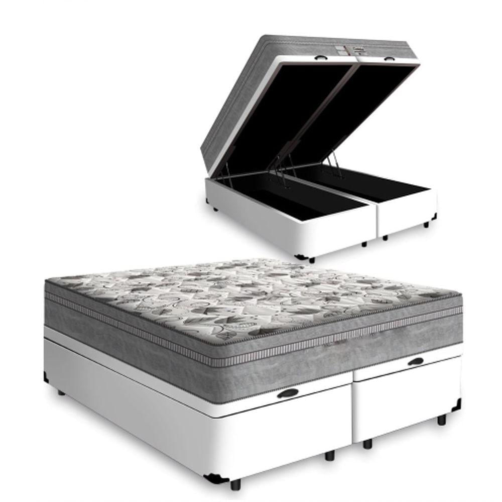 Cama Box Baú King 193 Bipartido Tecido Sintético Branco Com Colchão De Molas Ensacadas Evolution - Probel - 72x128x188