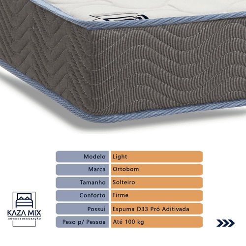 Além disso, este modelo conta com tratamento antiácaro e antialérgico, promovendo um ambiente de descanso mais saudável e livre de impurezas. Fabricado com a qualidade reconhecida da Ortobom, o Light D33 é a escolha ideal para quem valoriza bem-estar e durabilidade. Transforme suas noites com o conforto que você merece!