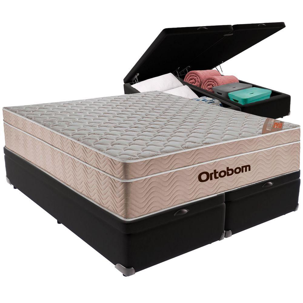 Cama Box Baú Preto E Colchão Airtech Springpocket Molas Ensacadas Queen Ortobom