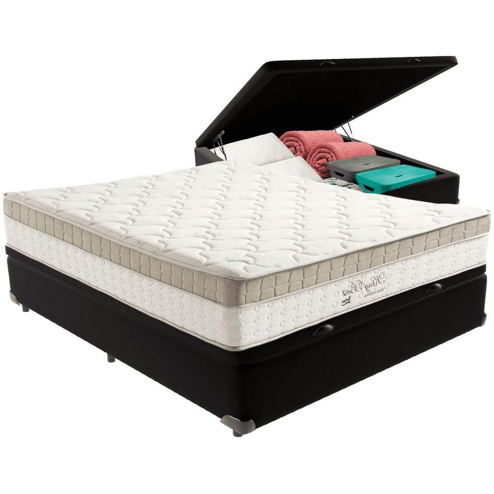 Cama Box Baú Preto E Colchão King Best Molas Ensacadas Casal 138x188x33 Anjos